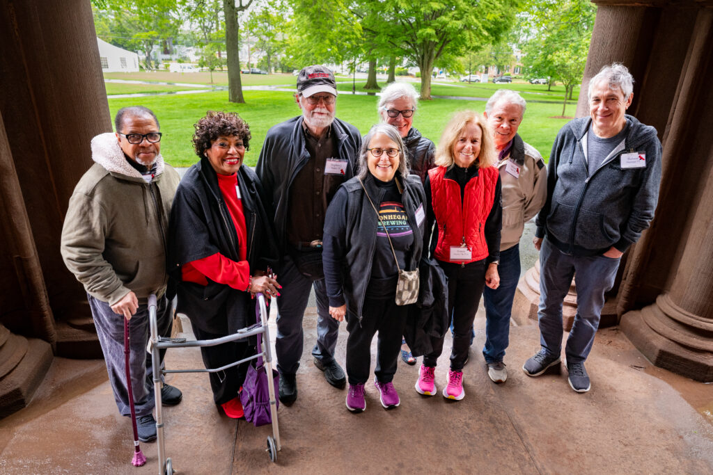 During Reunion 2025, we dedicated the bench and plaque celebrating our class of women who led Wesleyan’s return to co-education. The plaque reads, “In honor of the women of the Class of 1974 who led Wesleyan’s return to co-education. Given by the Class of 1974.” There were 20 to 25 at the event—women and men from our class, alums from other classes, and Wes staff. After I spoke, Phoebe Boyer ’89, chair of the Wesleyan Board of Trustees, spoke for a few minutes, thanking us for paving the way for women who came after us.