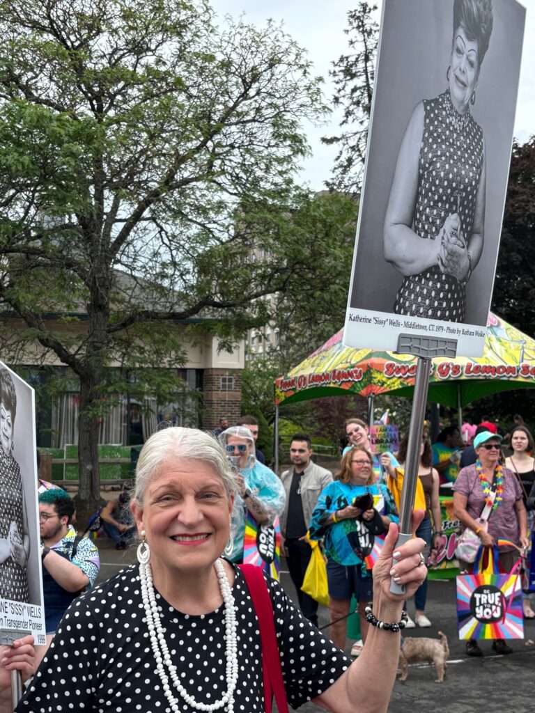 And last but certainly not least, Barbara Woike submitted a terrific story about a photo. She writes, “This June a photo I shot 46 years earlier for my senior thesis exhibition brought me back to Middletown to honor its subject—local transgender pioneer, Katherine “Sissy” Wells, who would be 108 years old this summer. My visit included an evening of recollections and reflections and the permanent installation of Wells’s portrait at the Buttonwood Tree Arts Center on the north end of Main Street, in the same building where Wells lived when it was a residential hotel. The next day I had a blast marching in Middletown’s Pride parade with 20-plus people carrying large signs featuring my 1979 photos of the fabulous Ms. Wells.